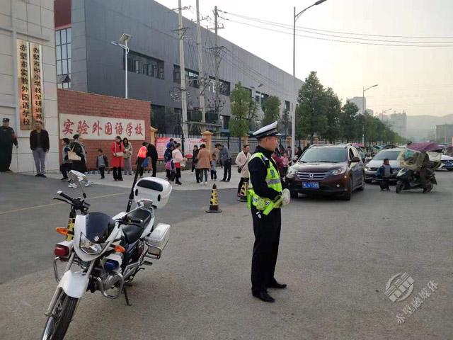 11月22日12:15分,赤壁市第一初級中學(xué)校門口,市交警大隊(duì)正在開展“交警護(hù)學(xué)崗”活動。民警在學(xué)生上學(xué)放學(xué)時(shí)段進(jìn)行交通疏導(dǎo),指揮車輛減速讓行,確保學(xué)生安全往返。