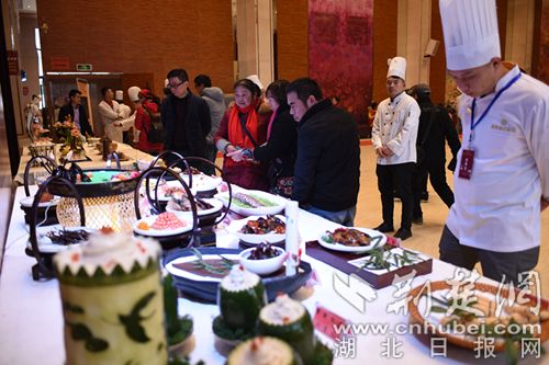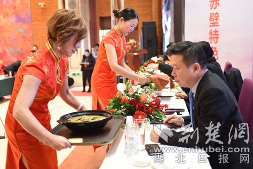 經(jīng)過精心制作,菜品《三顧茅廬》《蒲圻魚嘴》《茶香紅酒牛肉》《赤壁魚羊鮮》等極具咸寧地方特色的美食香飄四溢,讓現(xiàn)場觀眾一飽眼福,滿足味蕾需求的同時,也展示了地方飲食文化特色。