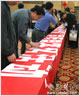 數(shù)千名群眾在拒絕盜版的橫幅上簽名.