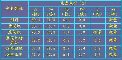 越王勾踐劍青銅合金配比表